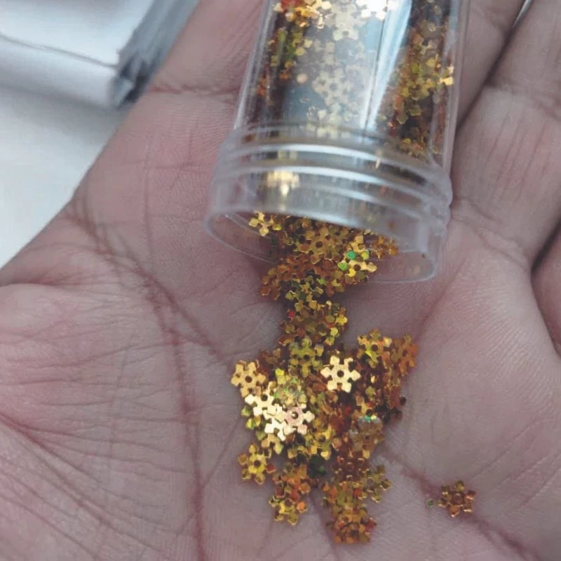12 عدد قوطی نمک پاشی پولک طرف دانه برفی براق در رنگ های مختلف