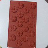 قالب سیلیکونی بیسکویتی قالب شکلات بیسکوییتی گرد سیلیکونی ابعاد حدودا 29.5در 17.5، قطر هر خانه 4 سانت و عمق حدودا 1 سانت